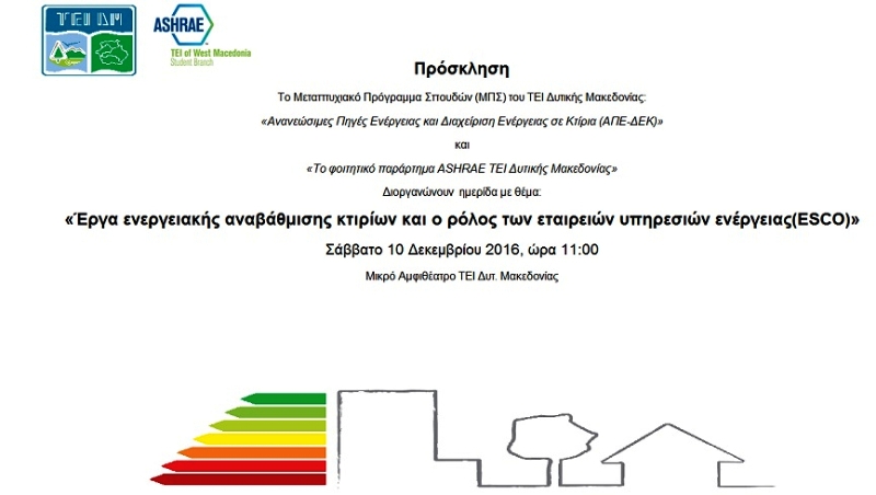 «Έργα ενεργειακής αναβάθμισης κτιρίων και ο ρόλος των εταιρειών υπηρεσιών ενέργειας (ESCO)»